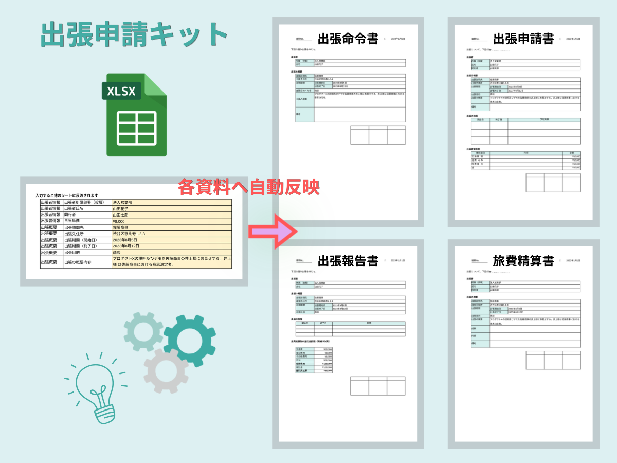 • 出張命令・出張申請・出張報告・旅費精算のテンプレートが欲しい。